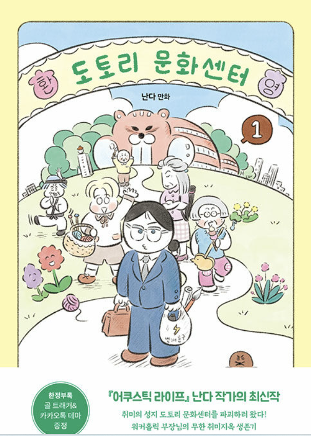 한번 보면 그냥 지나치지만, 어디선 한번 들었던 걸 다시 만나면 그때는 손이 가는데 <도토리문화센터>는 며칠 전 지인에게서 재밌다는 얘기를 들은 참이었다. 오랜만에 초집중해서 큭큭대면서 재밌게 만화를 감상하는 기분은 글책과는 다른 묘미가 있었다. 지은이 '난다'작가가 궁금해져서 전작인 '어쿠스틱라이프'를 들춰보는 새 도서관 문 닫을 시간이 되었다.