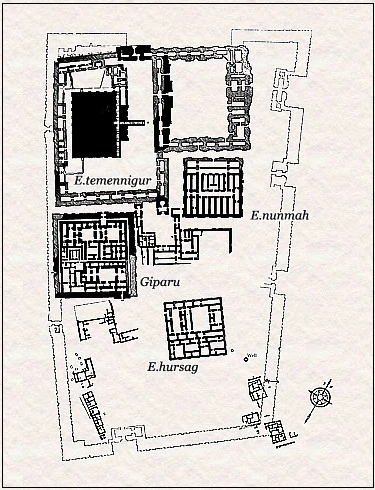 수메르의 많은 도시에서는 신전과 궁정이 도시의 중심에 나란히 존재하였다.