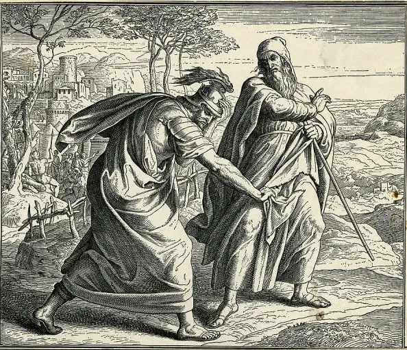 더 나아가 질책을 넘어 하나님께서 왕위를 다른 사람에게 넘길 것이라는 말을 남기며 사울을 두고 자신의 거처로 떠나 버린다.