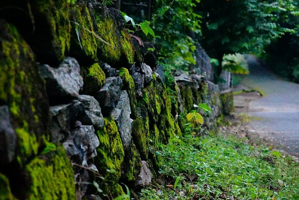 이끼가 군데군데 낀 돌담은 중후한 멋을 낸다.