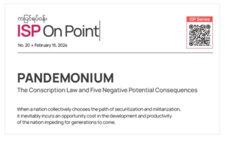 독립 씽크탱크인 ISP-Myanmar는 2월 16일자 보고서를 통해 미얀마 군정의 징병을 위한 병역법 시행이 초래할 다섯가지 부정적인 결과를 전망하고 있다.