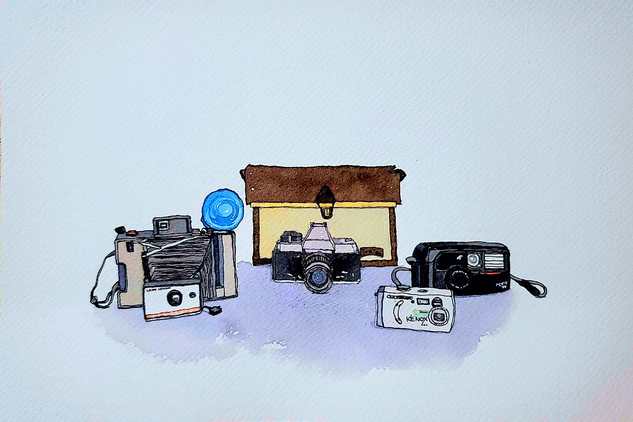 아이들이 크는 모습을 남기고 싶어 찾아왔는데 문이 닫혀있다. 다른 곳으로 사진을 찍으러 간다는 문구가 눈에 들어온다. 날을 잘 못 잡았나 보다. 갑자기 어디로 가야 할지 모르는 길을 잃은 아이가 된 것 같았다. 쇼윈도로 시간이 차곡차곡 쌓여있는 카메라들이 눈에 보인다. 익숙한 카메라도 있다.
