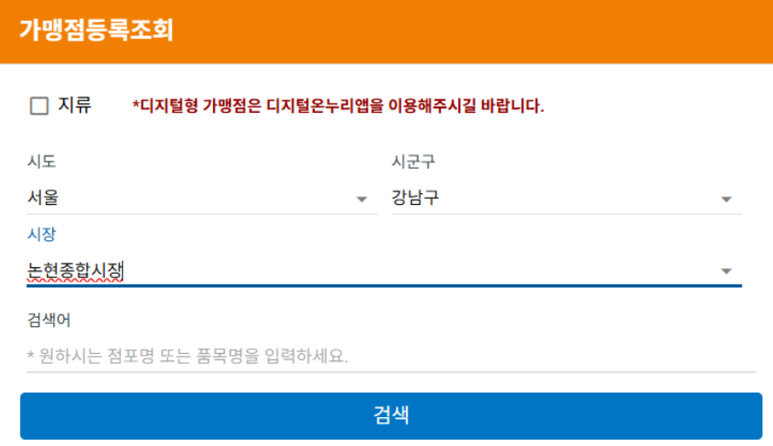 온누리 가맹점 찾기