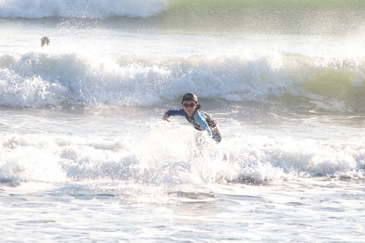 내 마음을 읽은 건지 서핑 사장님은 땅 위에서 연습은 그만하고 곧바로 파도를 타보러 나가자고 했다. 1:1 강습 신청을 했기에 남편과 나, 1호는 각자 담당 선생님이 있었다. 나를 가르쳐줄 발리니즈 선생님 이름은 난다로 딱 봐도 20대 초반의 앳된 얼굴을 하고 있었다. 영어로 말을 붙이려는 찰나 "안녕하세요 누나! 잘할 수 있어요!" 하며 한국말을 유창하게 하는 난다 앞에서 나는 깔깔 웃고 말았다. 그렇게 난다를 따라 바다로 첨벙첨벙 들어갔다.