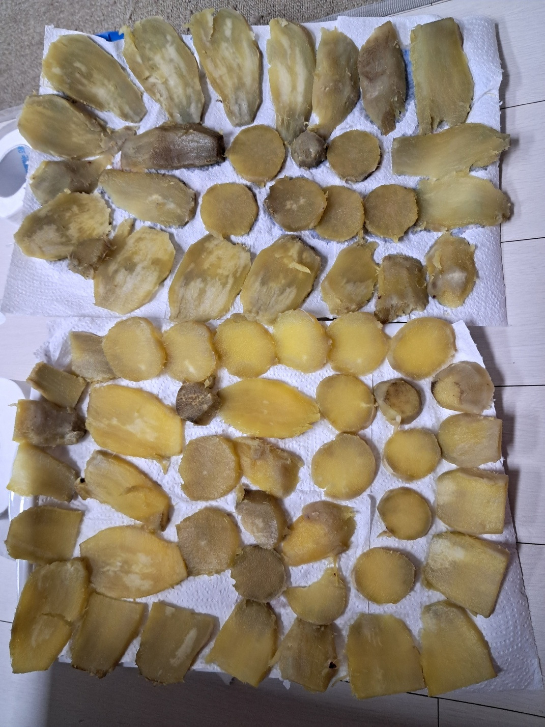퇴근하는 길에 고구마 한 봉지를 사서 큰 냄비에 들어갈 만큼의 양을 삶고 식혔다가 얇게 썰어서 쟁반에 반듯하게 펴고 나면 이제부터는 시간 싸움!