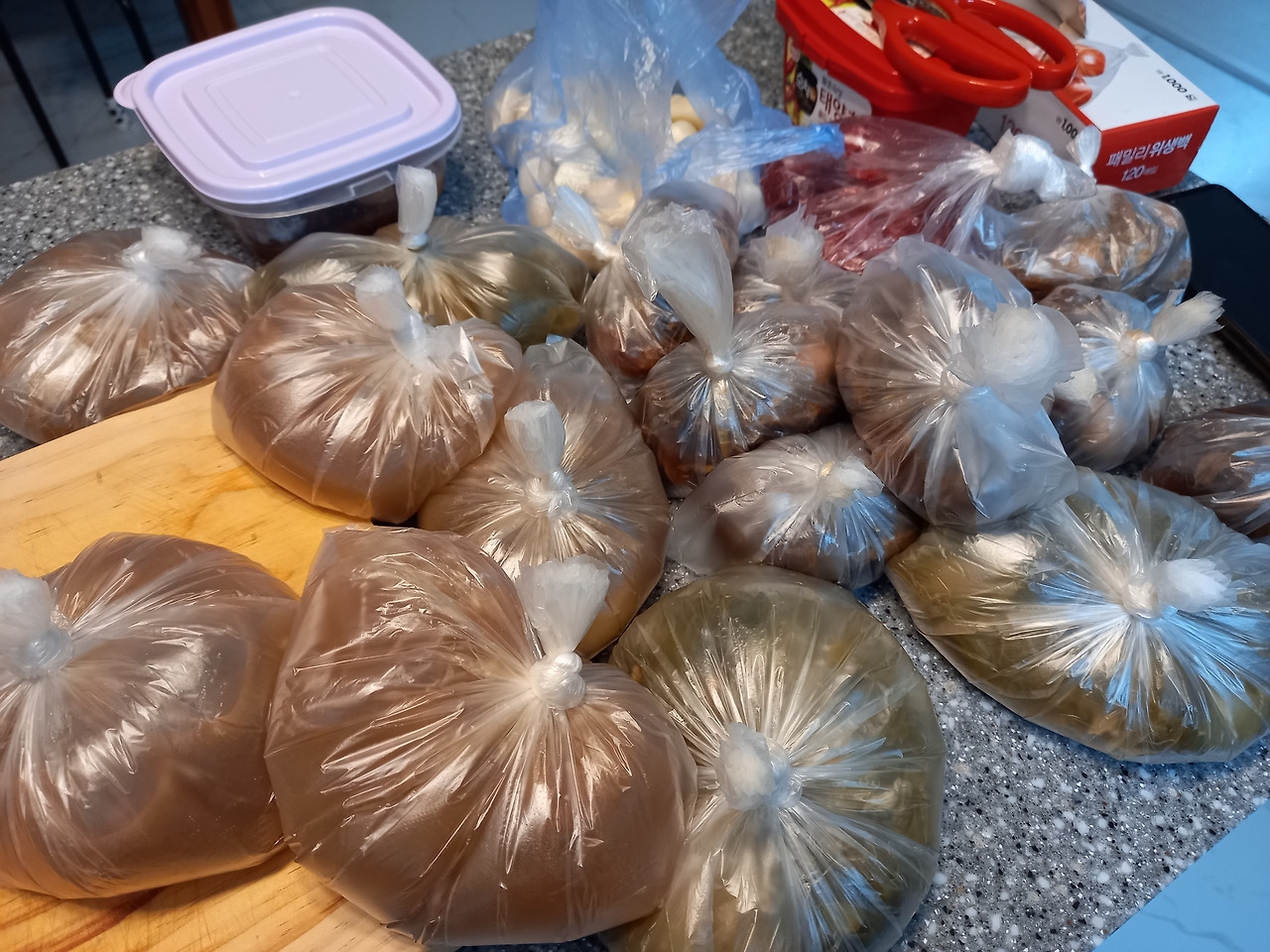남편은 “요리는 과학이다!”라고 주장하면서 열심히 연구하고 정량. 정품. 정식으로 계량컵까지 써가며 음식을 만든다. 큰 손도 어머님을 닮은 것 같다. ‘적은 양은 맛이 제대로 안난다’며 우리 두 식구 먹는데도 참 많이씩 한다.