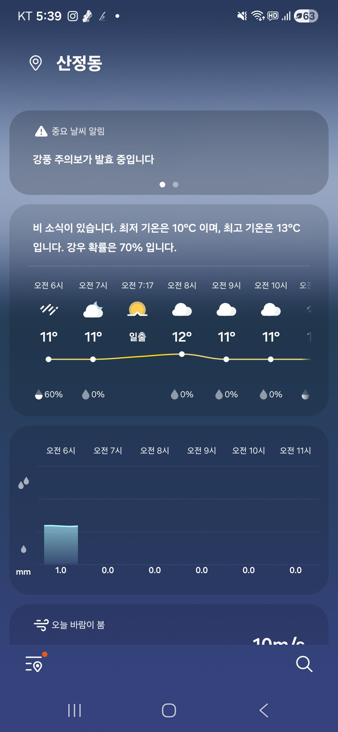 어제까지만 해도 날씨가 무척 포근하고 따스해서 은행잎 가득한 거리를 걷는 재미가 쏠쏠했는데 새벽부터 갑자기 천둥번개가 요란하게 울어댔다. 일기예보를 보니 '오늘은 갑자기 황사가 낀 흙비가 내린다'고 했다. 그나마 다행히 늦은 오후에는 그친다는!