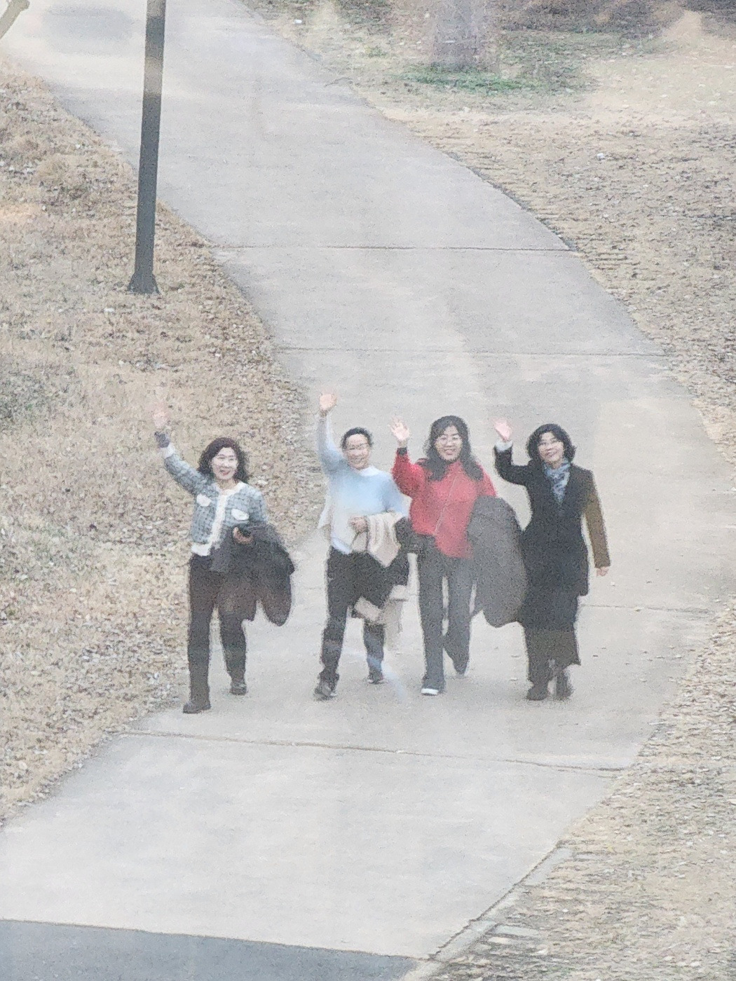 가장 기억에 남는 장면을 꼽으라고 한다면, 사진 찍기 위해 도서관 앞에 모여 모두 '하나 둘 셋'하고 뛰었던 장면이 생각난다. 점프를 하기위해 최선을 다해 뛰는 모습이 정말 웃기면서도 인상적이었다. 어느 친구도 한마디 덧붙였다. '조금 우울하거나 친구들이 보고싶으면 이 사진을 들여다봐야겠다'고!