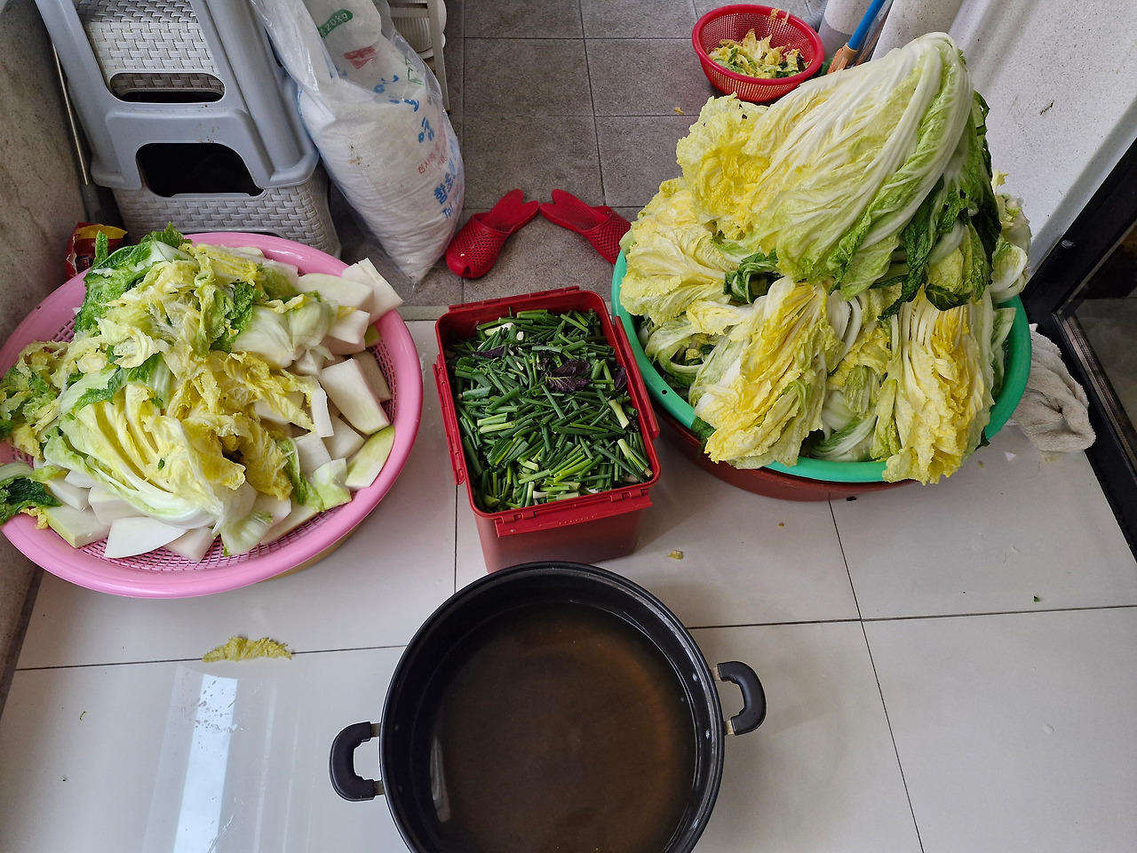 몇 주 전에 손가락 살까지 뜯기며 겉저리를 만들었던 남편은 혼자서 배추를 사다가 또 김장준비를 해놨다. 남편도 나없이 잘 지내주고 연락이 늦어도 이해해줘서 더욱 고마웠다.