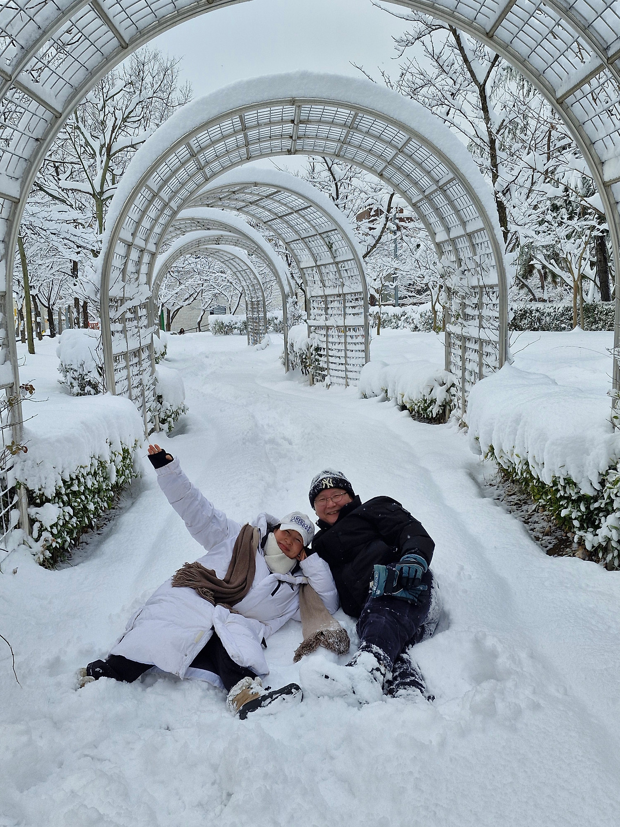 하얀 함박눈 덕분에 남편과 화해도 하고 또 추억 가득한 즐거운 하루를 만들었다.