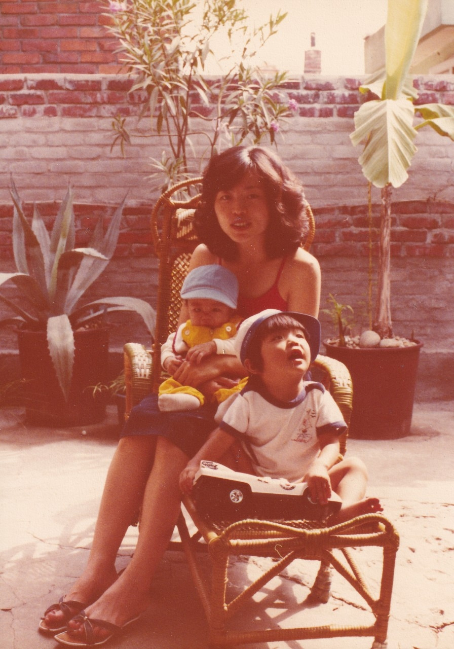 주안 할먼네 마당에서 찍은 엄마, 나 그리고 동생