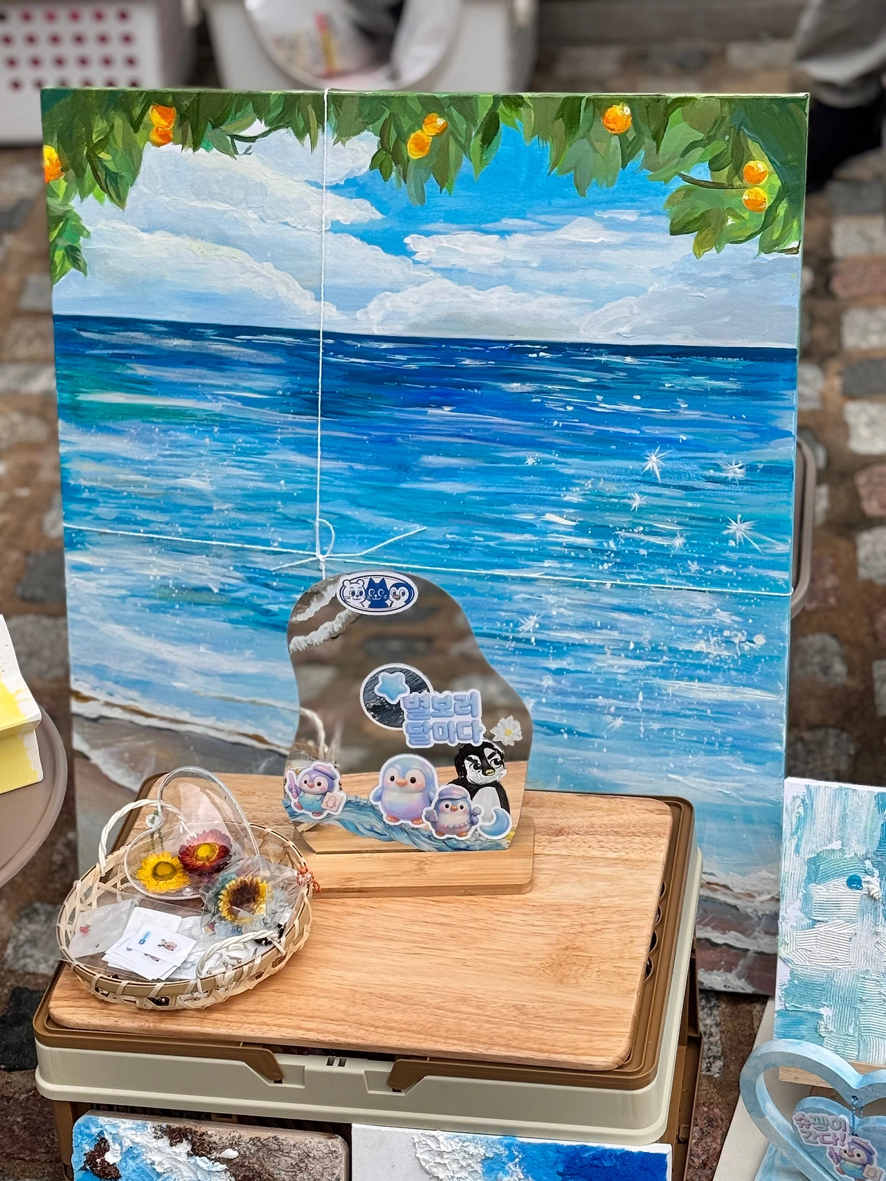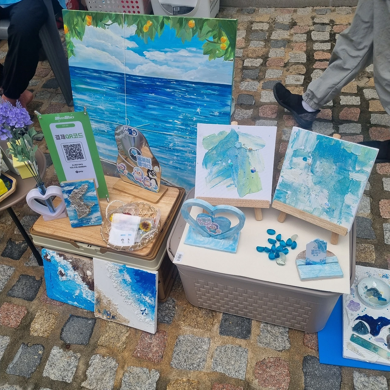 그렇게 하루 종일 많은 분들을 만났습니다. "작품이 정말 예쁘네요", "색감이 너무 예뻐요" "바다같아요" 같은 따뜻한 말 한마디 한마디가 저에게는 큰 힘이 되었습니다. 비록 몸은 힘들었지만, 제 작품을 통해 사람들과 소통하고 공감하는 순간들이 정말 소중했습니다.