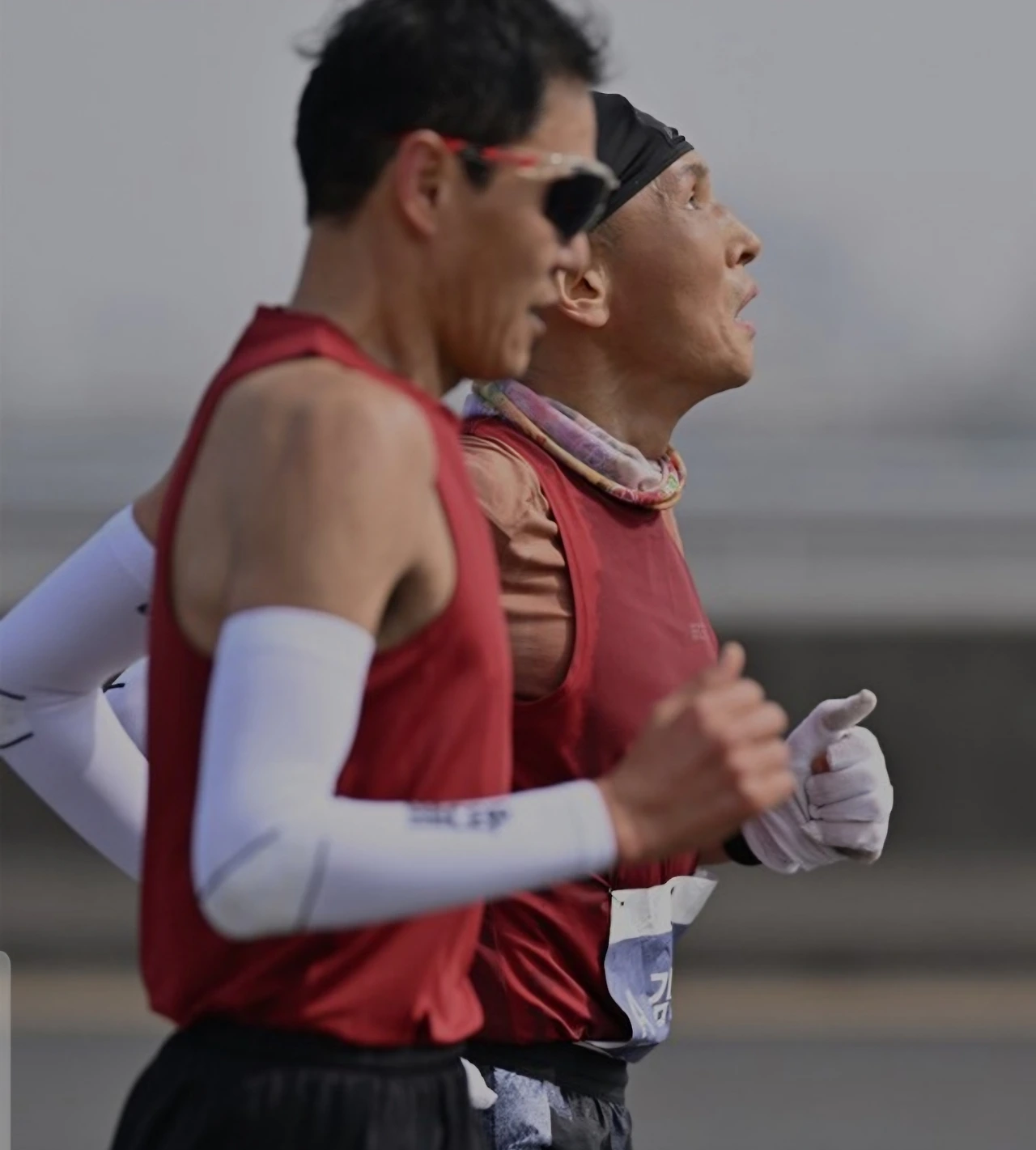 저는 은퇴 후 8년 만에 풀 마라톤 도전을 한 거였고 김정호선수는 5년 만에 도전하는 대회였어요.