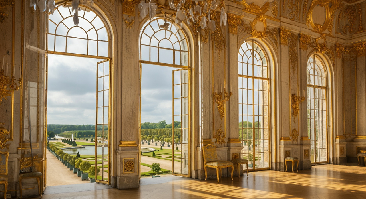 반면 왕과 귀족들의 궁전에서는 창문이 전혀 다른 방식으로 사용되었다. 궁전의 거대한 창들은 외부의 빛을 들여오면서도 동시에 바깥을 내다볼 수 있는 시야를 제공했다. 이러한 창은 단순한 관조의 도구가 아닌 권력을 상징하는 시각적 장치였다. 왕과 귀족들은 창을 통해 자신의 영토를 바라보며 통치 영역을 시각적으로 확인할 수 있었고, 이는 자연을 감상하는 것을 넘어 그들이 세상을 통제하고 있다는 상징적 의미를 지녔다. 대표적인 예로 베르사유 궁전이 있다. 베르사유의 거대한 창들은 정원을 향해 설치되어 있어, 왕은 이 창을 통해 자신의 정원을 내려다보며 자신이 다스리는 세계를 시각적으로 확인할 수 있었다. 이러한 창들은 왕의 권위와 지배력을 시각적으로 강화하는 중요한 요소로 기능했다.