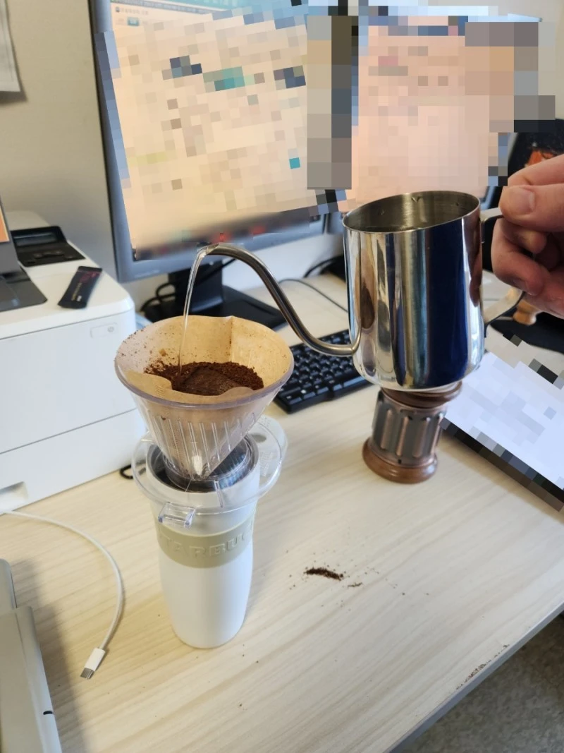 커피에 진심인 동기형은 본인이 여행 다닐 때 쓰던 휴대용 핸드드립 세트를 우리 당직실에 쾌척했다.