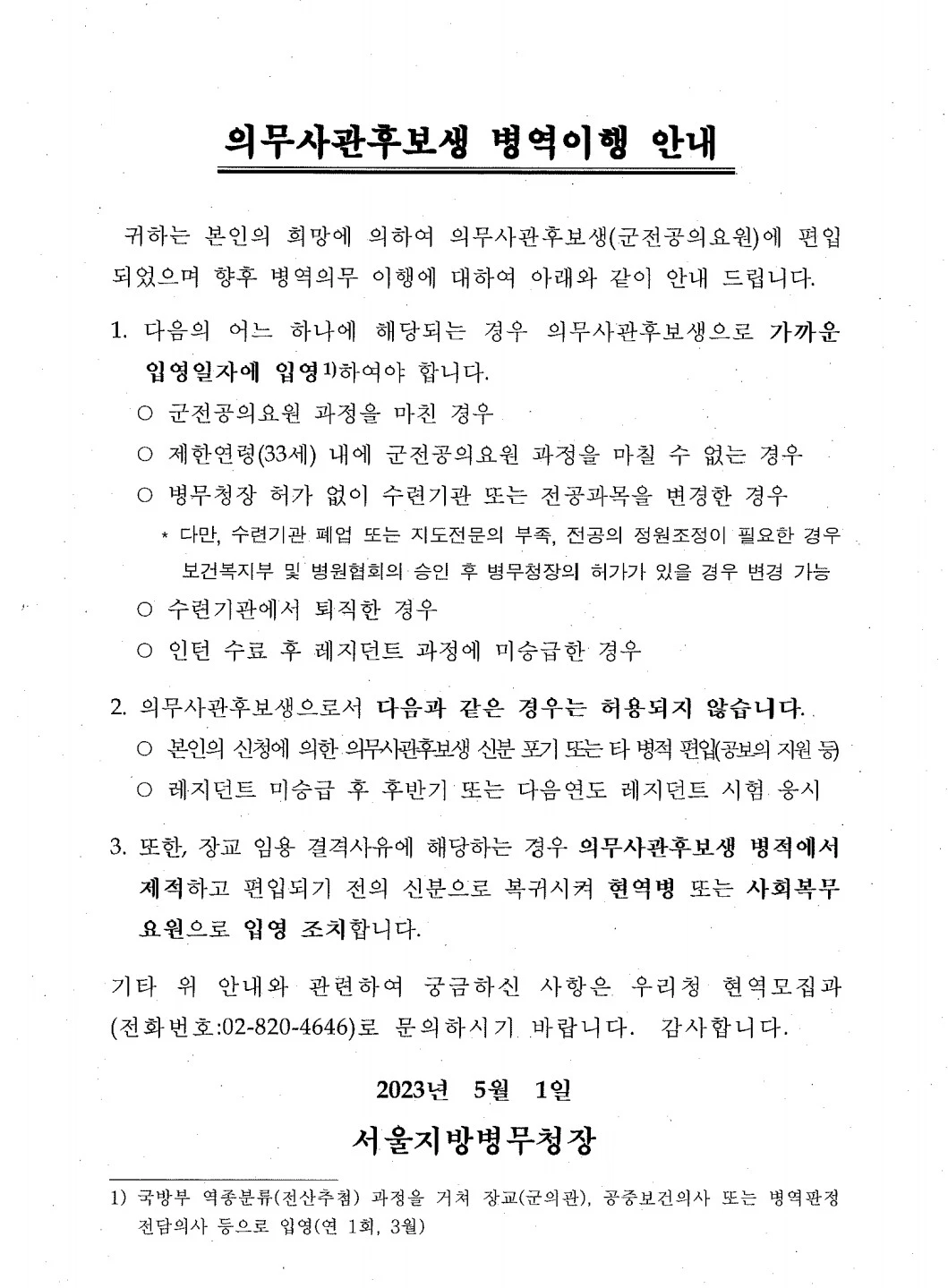 우리병원 군전공의 국외여행 추천서류대한민국 남자라면 누구나 군대를 간다.