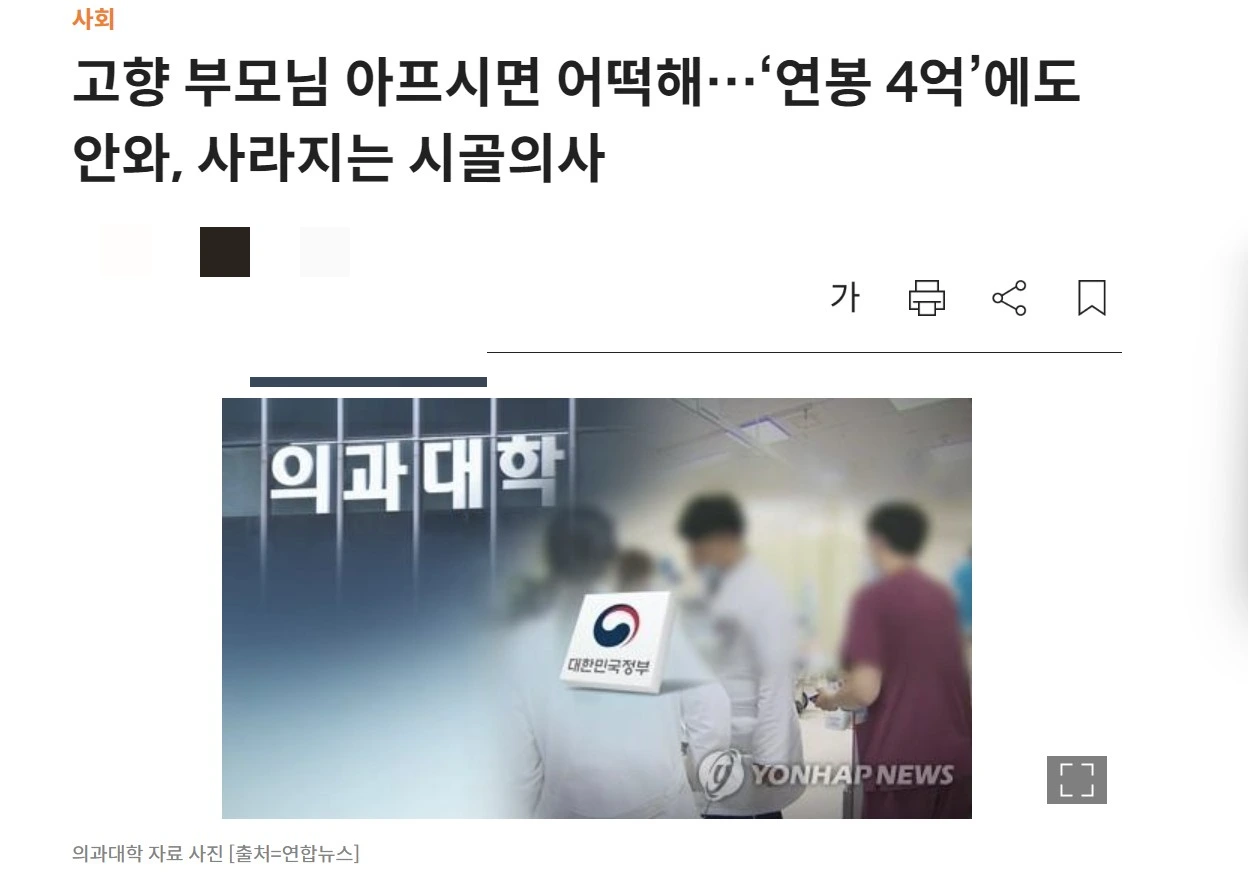 '종종 연봉 몇억을 줘도 시골에서 근무하려는 의사가 없다' 라는 자극적인 제목의 기사들이 보이곤 한다.