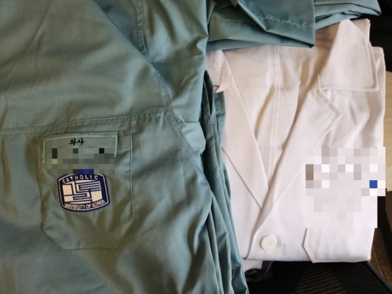 민트색 근무복 위에 하얀 가운이 걸쳐있는 나의 모습