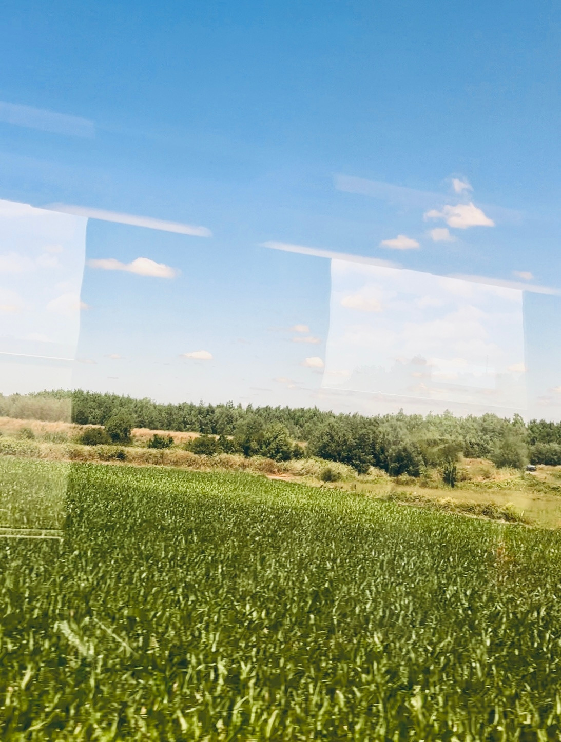 어디서 본듯한… 아마 고속도로에서 흔히 볼 수 있는 우리나라 충청도쯤 지나가는 느낌의 풍경이 창밖으로 쭉 이어졌다.