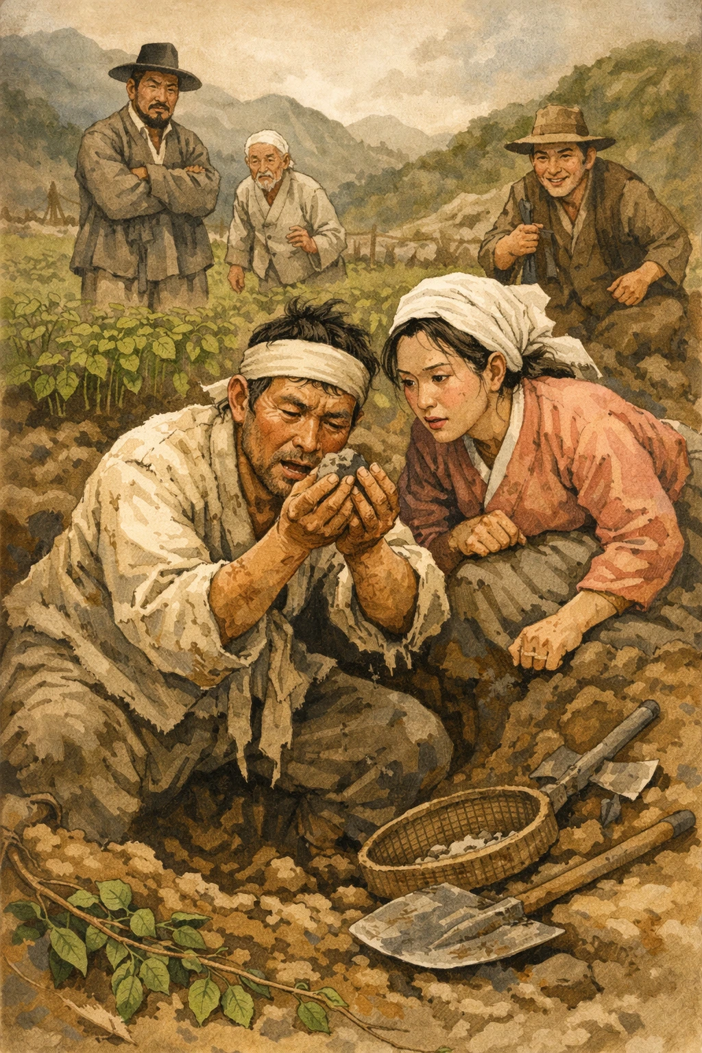 그래서 이 소설은 오늘 더 아리랑처럼 읽힌다. 설움이 있지만 주저앉지는 않고, 막막하지만 또 하루를 넘어서야 하는 마음. 「금 따는 콩밭」은 그런 삶의 고개 위에서 들려오는 또 하나의 아리랑이다. 금은 끝내 나오지 않았지만, 그 실패 속에서도 우리는 한 시대를 견디던 사람들의 슬픈 노래를 듣게 된다. 그리고 그 노래는 지금 불안한 현실을 살아가는 우리 마음에도 조용히 스며든다.