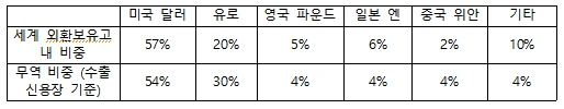 < 외환보유고와 무역에서 차지하는 통화의 비중 (2022년말 기준) >