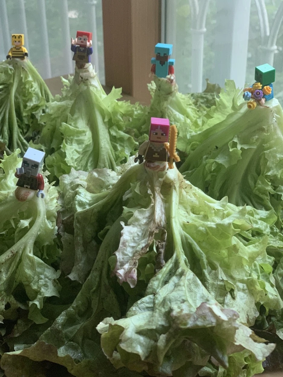 나도 화답했다. 내가 무친 상추 무침(나 혼자 먹는다.), 양념한 소고기를 바짝 구워서 상추 위에 올리고 발사믹과 올리브유로 드레싱하면 다 잘 먹는다. 상추와 무채, 계란 후라이 비빔밥도 좋다. 붉은 빛을 띄는 야채와 함께 샐러드로 먹기, 샌드위치에 넣어 먹기. 그래도 소진하기에 나는 역부족이었음을 인정할 수밖에 없다.