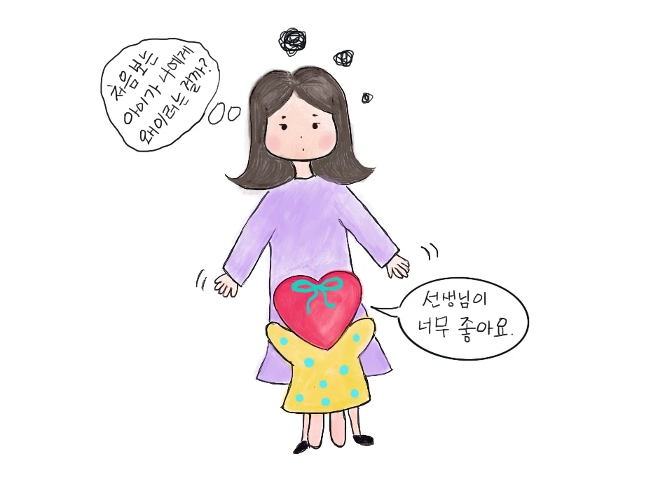 아이에게 그런 말을 들어서 기분이 좋았냐고요? 아니요. 당황스러웠습니다. 통성명도 안 한 상태에서 제 허리를 덥석 끌어안는 아이가 매우 불편했습니다.