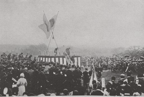비밀항일결사인 한인애국단 단원인 윤봉길이 이 기념식에서 사열대 위에 폭탄을 투척했고, 그 자리에서 많은 일본군 고위 장성들이 사망했다. 이 폭탄 투척 사건은 중국 민족운동사의 획기적인 사건이 되어, 곧이어 훙커우 의거로 이어졌다.