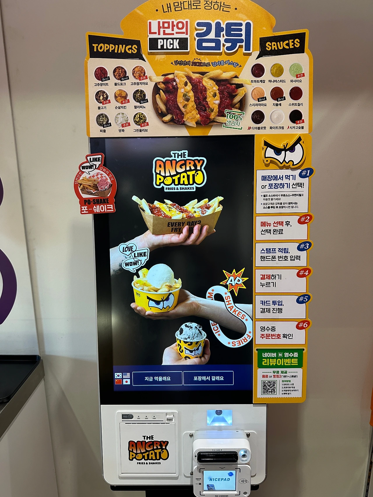 앵그리 포테이토의 신림역 매장은 굉장히 깔끔했다. 보통 특유의 기름 쩐 내가 나기 마련인데 그런 부분도 없었다.
