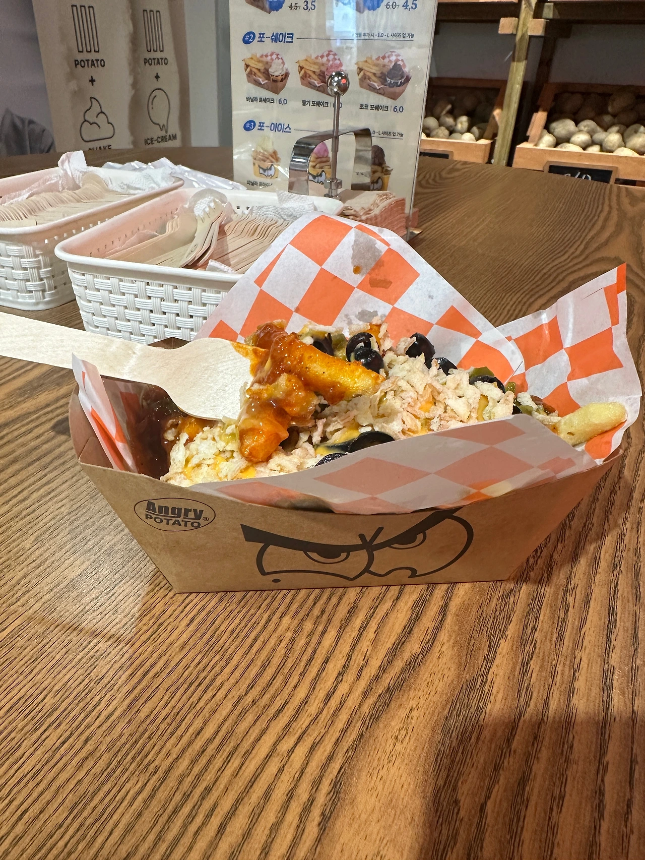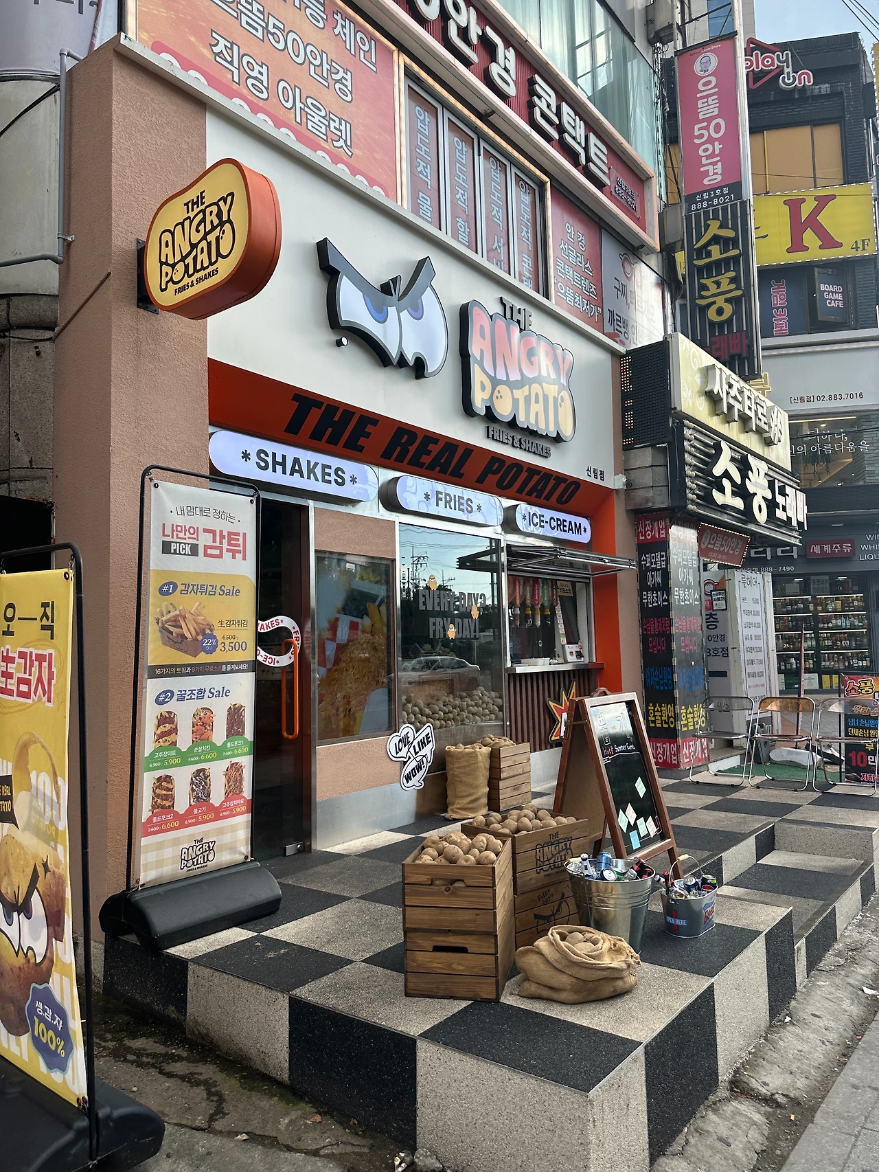 앵그리 포테이토를 유튜브 영상으로 처음 접했다. 끼룩푸드라는 유튜버의 영상에 포테이토 조회수가 무려 631만 회(11월 15일 발행일 기준)다. 감자튀김 하나로 어떻게 631만 회를 달성하지? 이해가 안 됐는데 이 영상 보자마자 다음 날 바로 지하철 타고 1시간 넘게 걸리는 신림역까지 갔다.