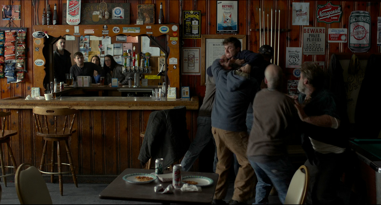 주인공 리는 얼핏 보기에도 고장 난 인물입니다. 잡역부로서 세입자에게 기본적인 사회적 매너도 챙기지 않고, 대화를 시도하는 사람은 모조리 차단하며, 바에서 모르는 사람에게 시비를 걸어 한바탕 싸움을 벌이기도 합니다. 영화의 첫 장면에서 본 보트 위의 살가운 삼촌과는 완전 딴판입니다. 무언가 커다란 사건이 있었던 게 분명합니다. 하지만 아직까진 아무것도 알 수 없습니다. 본격적으로 그의 이야기가 시작되는 지점은 형의 시체가 안치되어 있는 병원으로 향하면서입니다.