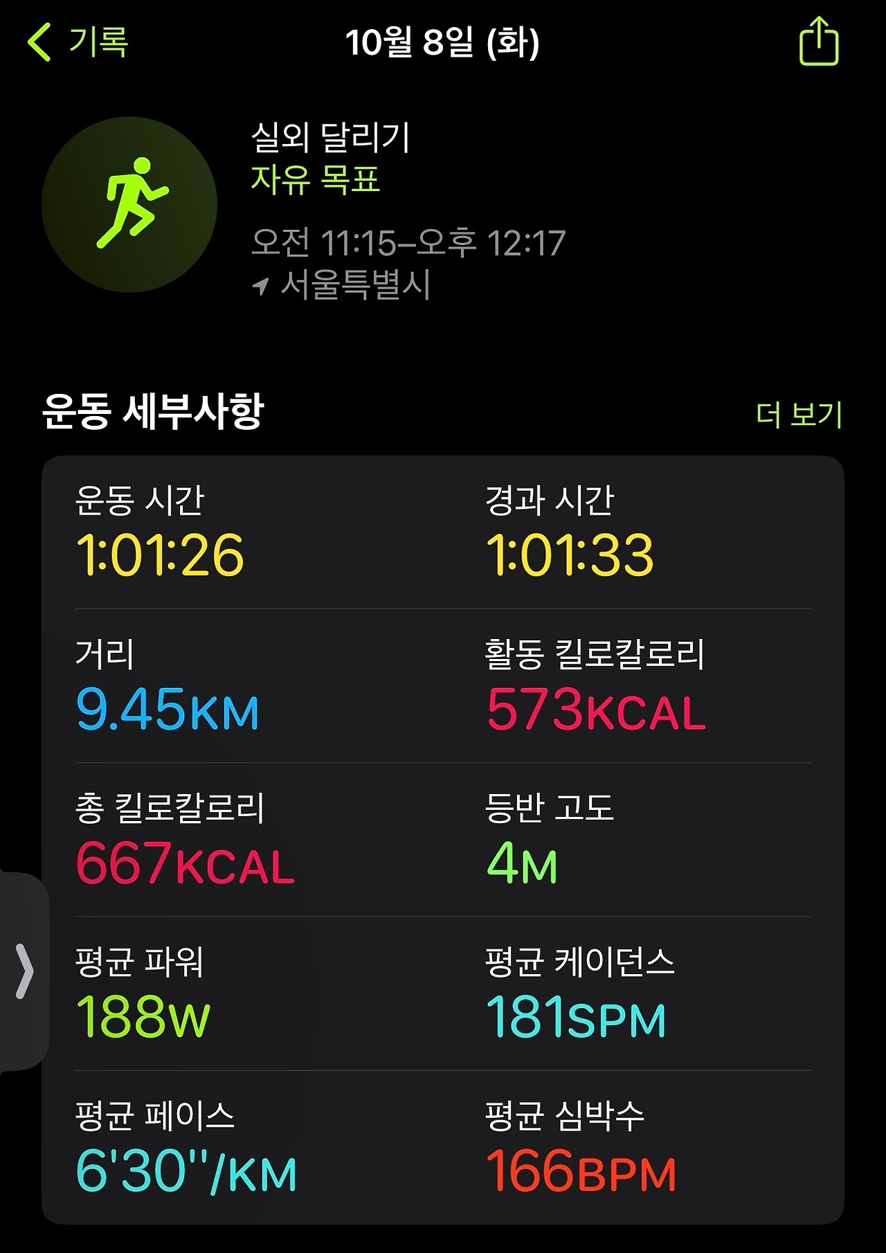 보통 7:30 페이스였는데, 6:30 페이스로 달리게 됐는데