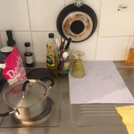 내가 처음으로 살게되었던 리옹의 기숙사에는 현관문을 통해 원룸에 들어오면 침대와 책상이 있는 본격적인 생활 공간이 나오기 전 아주 짧은 복도의 왼쪽에 작은 주방이 위치해있었다. 부엌에는 가스렌지 밑에 들어가는 허리가 조금 안되는 높이의 빌트인 냉장고와 양 손을 뻗으면 한 품에 들어오고도 남을 공간에 인덕션 2구, 조금 큰 후라이팬은 들어가지도 않을 크기의 개수대가 있었다.