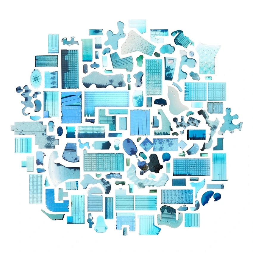 그녀가 활용하는 매체는 다름 아닌 '구글 어스'이다. 그녀는 구글 맵을 떠돌며 지형물들을 캡처해서 콜라주를 통해 하나의 아카이브를 만들어낸다. 수영장 외에도, 비행기, 핵 냉각 타워 등 그녀의 수집은 다양하다.