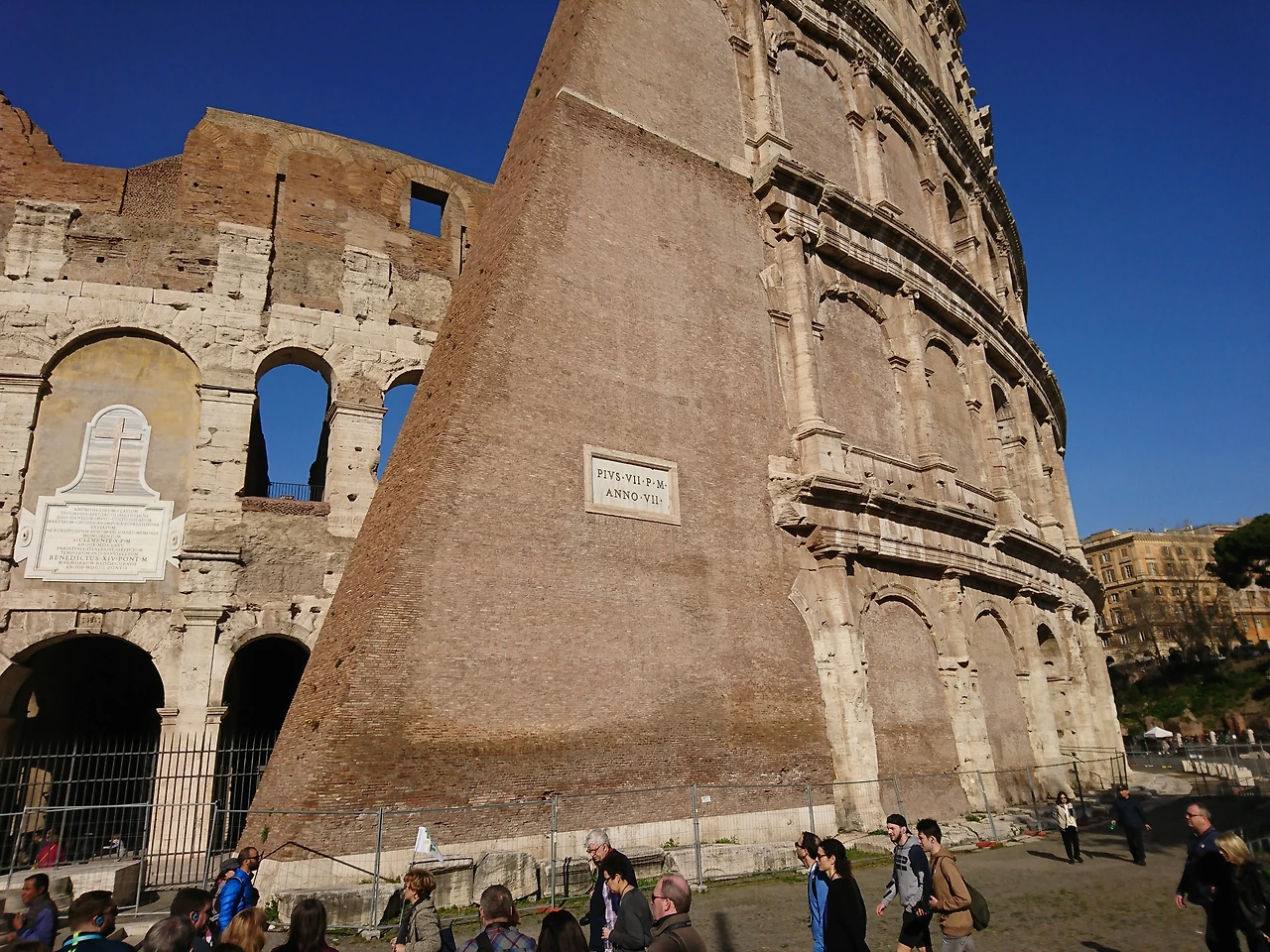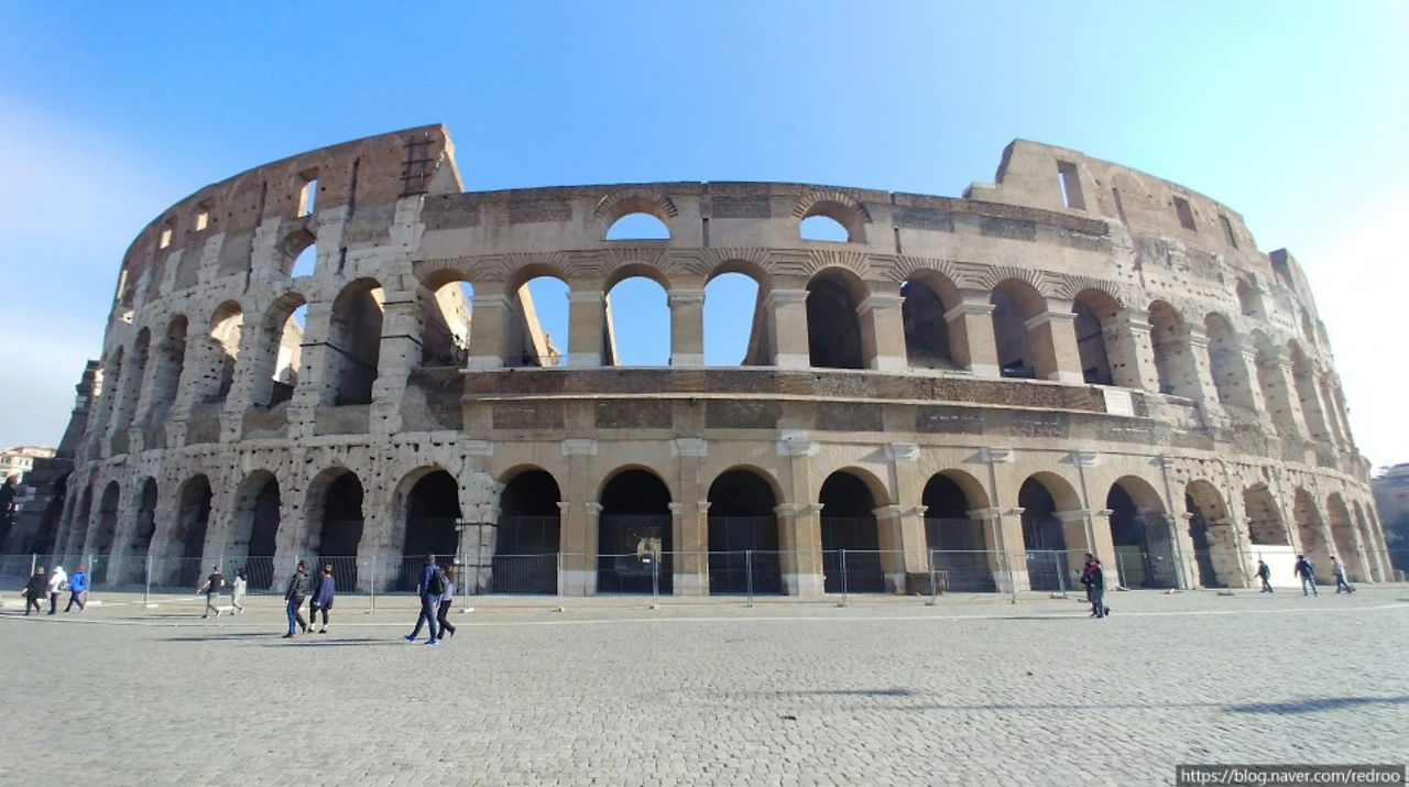 콜로세움은 약 5만 명의 관객을 수용할 수 있는 규모로 바깥 둘레 527m, 높이 57m에 이른다. 웅장한 콜로세움 외벽은 아래층부터 도리스식, 이오니아식, 코린트식 원기둥이 80개 아치를 끼고 늘어서 있다. 당시 얼마나 많은 사람들이 동원된 건축물 일지 상상만 해도 움찔한다.