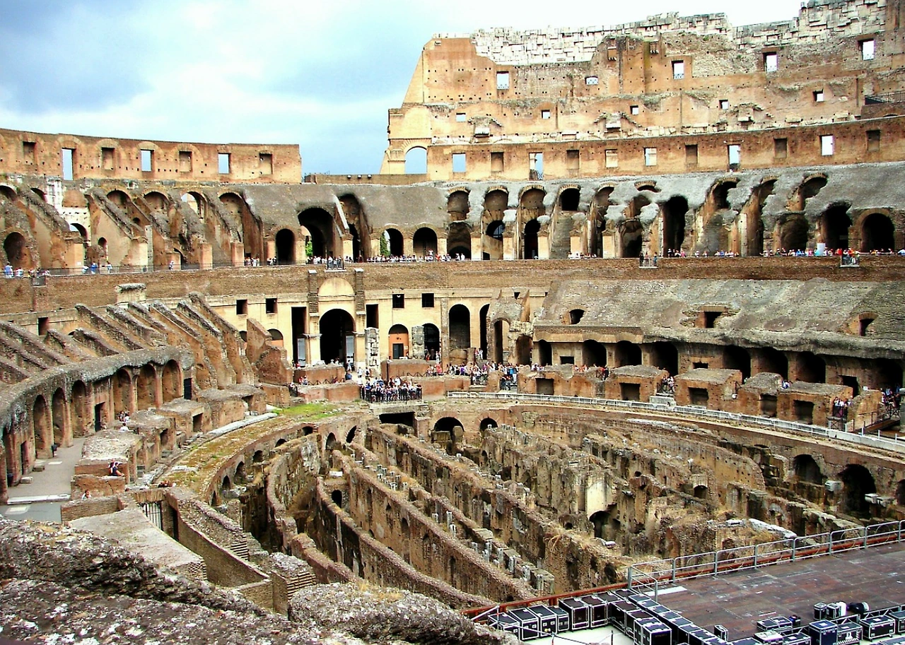 이곳에는 네로 황제 궁전 도무스 아우레아에서 내려다보이던 인공 연못이었다. 흙으로 메꿔 기반을 다지고 이런 거대한 경기장을 건설한 것이다. 2000여 년 세월 동안 지진과 수많은 전쟁을 겪었지만 아직도 거의 원형을 유지하고 있으니, 고대 로마의 뛰어난 건축 기술이 얼마나 과학적이고 견고한지 놀라울 뿐이다.