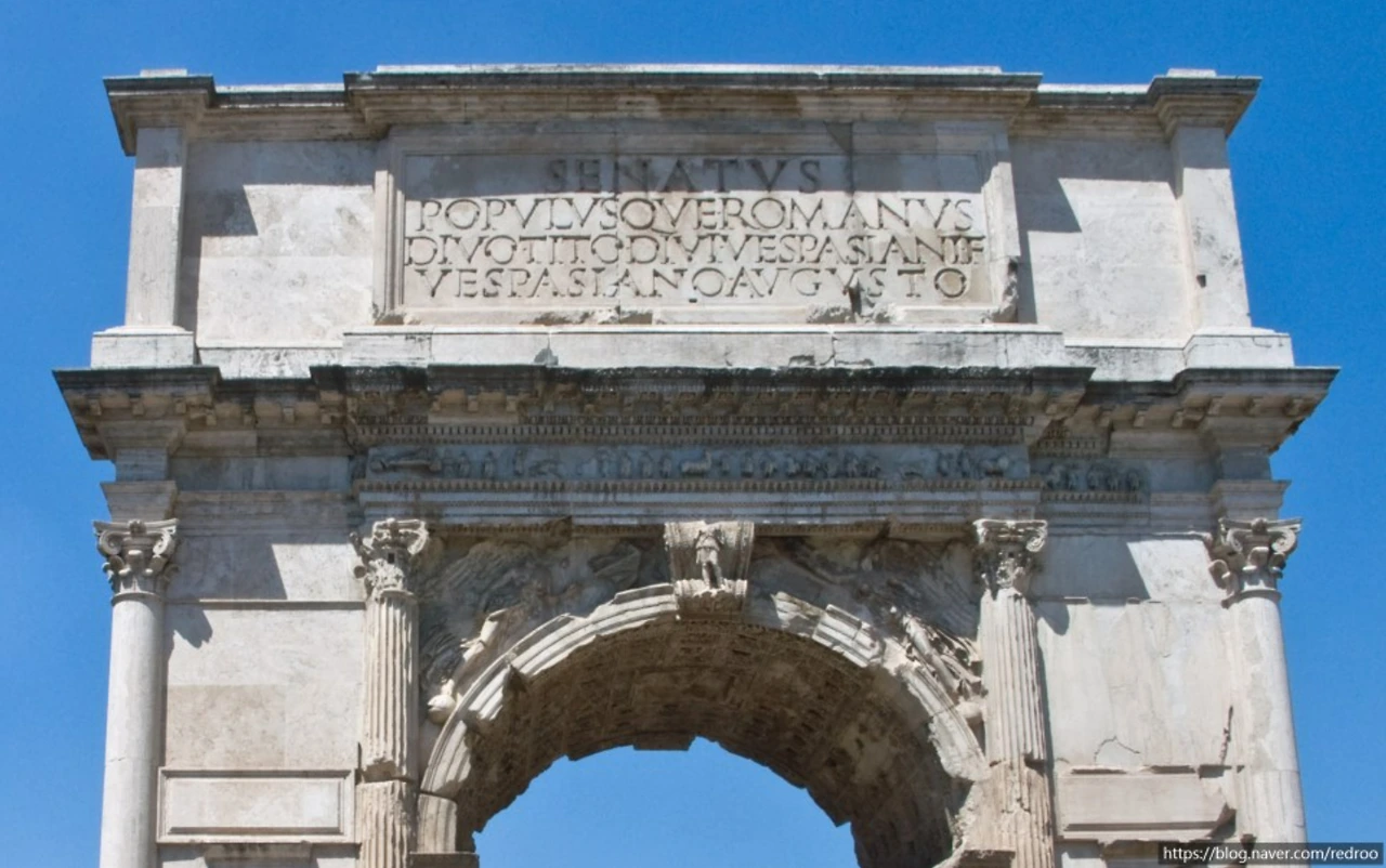 티투스 개선문은 예루살렘을 함락하고 승리한 로마 황제 티투스를 칭송하고, 왕권 강화를 상징하는 다양한 조각들로 가득 차 있다. 이 개선문은 프랑스 파리 샹젤리제 거리에 있는 개선문의 모태이다.