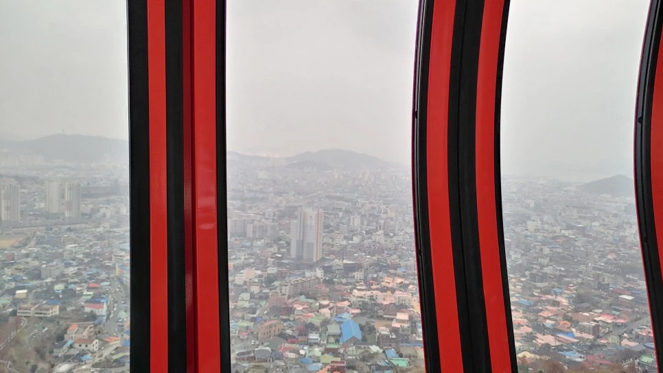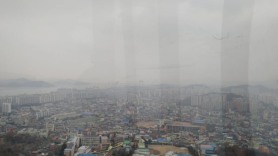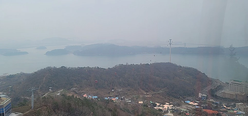 크리스털 캐빈은 바닥이 투명, 발아래로 다도해 풍경을 볼 수 있지만, 이렇게 미세먼지 가득한 날엔 비추!