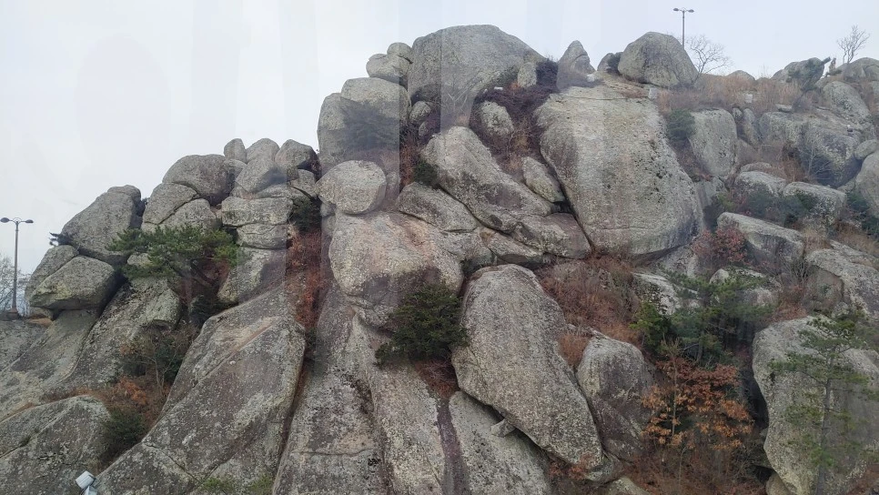여기까지 오르는 바위산이 특히 가파르다.