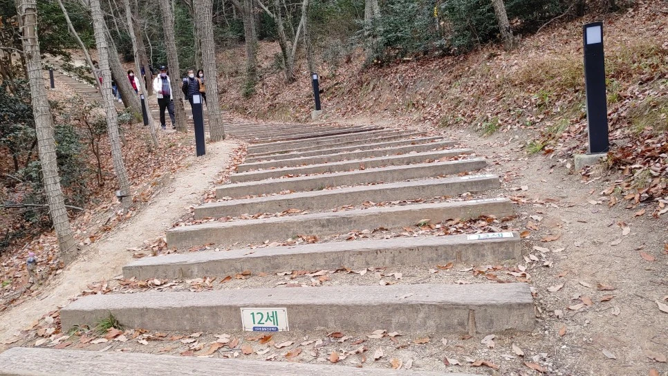 계단 중간, 우리는 왼쪽 둘레 숲길로 들어선다.
