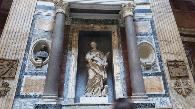 인간의 손으로 만들어진 건축물이 유구한 세월과 갖은 세파 다 견뎌내며, 이렇게 완벽하게 보존되어 왔다는 사실이 경이롭다. 한번 왔다가는 인생은 덧없이 짧은데, 그 짧은 살아생전 어떤 사람들이 남겨놓은 예술품은 참으로 긴 세월을 무색게 한다. 그동안 판테온 신전이 품어 온 신들의 숫자도 이곳에 찾아와 경탄과 놀라움을 금치 못하고 사라져 간 사람들 숫자만큼이야 할까!