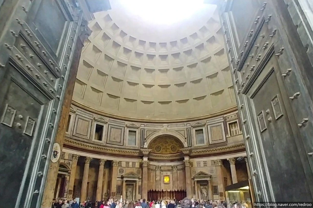 신기한 것은 판테온 천창으로 빗물은 들이치지 않는다는 것이다. 더운 공기는 위로 향한다. 판테온 철문을 닫으면 내부 더운 공기가 위로 상승, 천창으로 빠져나가기 때문이다.