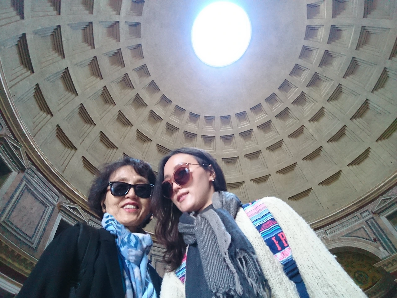 판테온 안으로 들어서면, 하늘로 부터 내리는 빛을 마주하게 된다. 고개 들어 그 빛을 향해 돔 천창(둥근 구멍)을 바라보는 순간, 고대 로마의 어떤 신과 교류하는 것 같기도 하고 신성하다는 느낌이 전달된다.