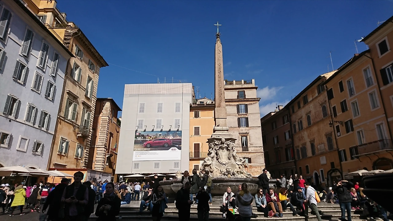 오늘도 세계 각국에서 찾아온 사람들이 오벨리스크와 판테온 분수 앞에서 쉬어가기도 하고, 바삐 스쳐 가기도 한다.