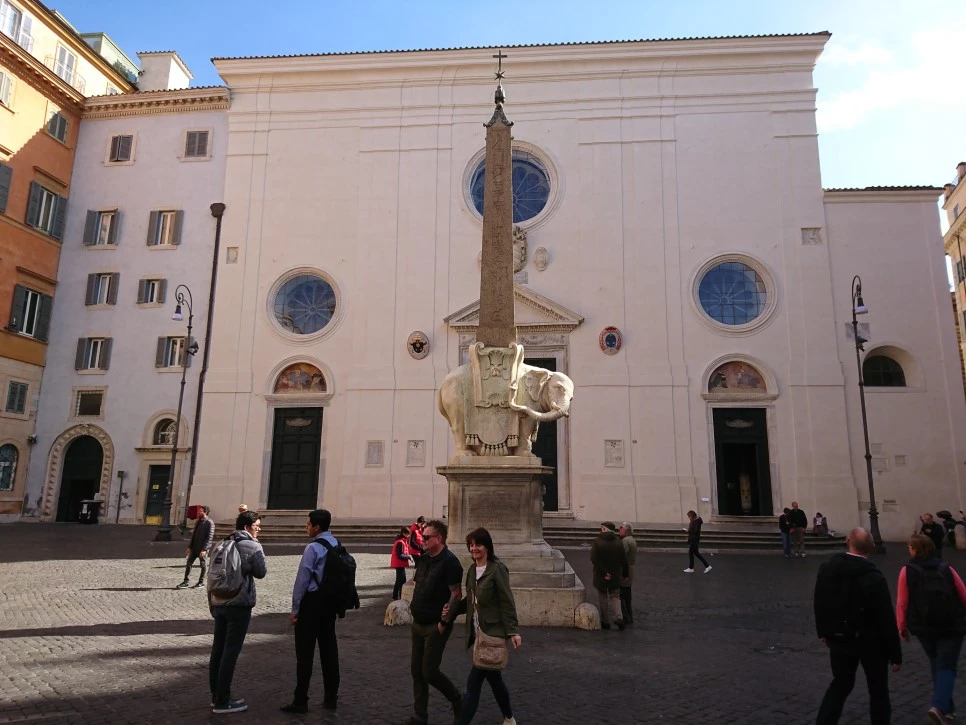 산타 마리아 수프라 미네르바 성당은 피냐 구획의 판테온과 인접한 작은 미네르바 광장에 있다.