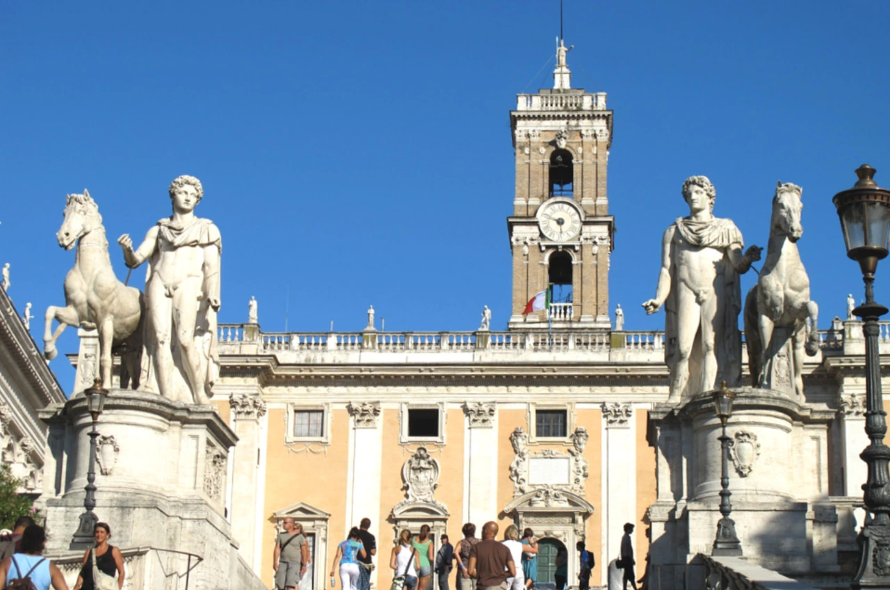 광장 입구 양편에는 로마 공화정 시절 로마군을 도와 주변 부족들을 물리친 디오스 쿠리 형제 석상도 대칭을 이루며 서있다. 중앙에 있는 시청 건물 종탑은 마르티노 론기(Martino Longhi) 설계로 1578~1582년에 걸쳐 건설됐다.