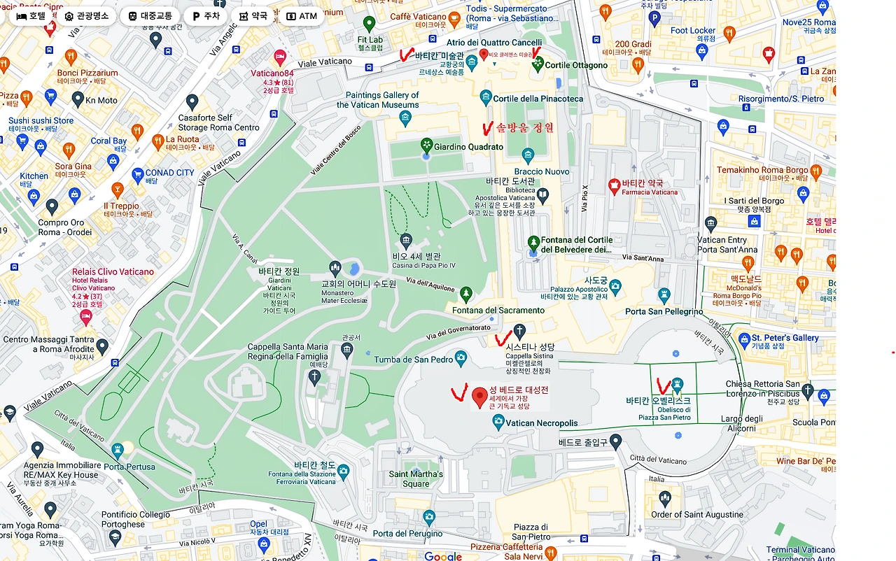 베르니니는 이렇게 열린 공간의 미학까지 살린 공간을 설계했다. 성 베드로 광장은 웅장하고 묵직하면서도 개방감으로 자유롭고 활기차 보인다.