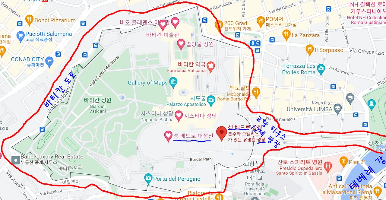 성 베드로 광장은 성 베드로 대성전 앞에 조성된 광장으로 최대 30만 명까지 수용할 수 있다.