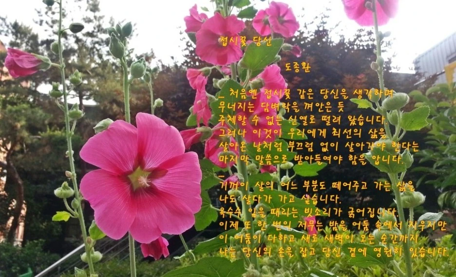 '접시꽃 당신'의 시인이 처음엔 정치인의 옷이 맞기나 할까, 좀 의아하기도 했다. 나중엔 국회의원 직도 거뜬히 해내는 것이 멋져 보이기도 했고.