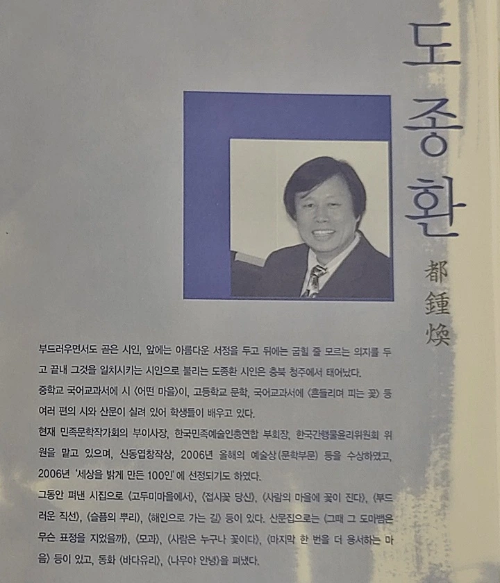 도종환 시인은 행동하는 작가다. 한국작가협회 사무총장(2007년)도 아무나 하는 자리는 아니니, 이때부터 이미 국회의원, 문화부 장관을 수행할 자질과 징조가 보였을지도.